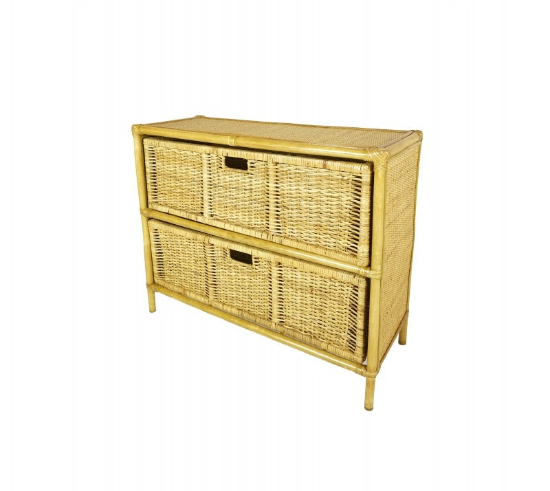 Ratanový nábytek -ratanová komoda 2 zásuvky. Konstrukce i výplet jsou z přírodního ratanu . Komoda má široké možnosti využití a je praktickým doplňkem do každé domáctnosti. | Barva ratanové konstrukce a výpletu je medová. Velikost komody je 89x35x71 cm