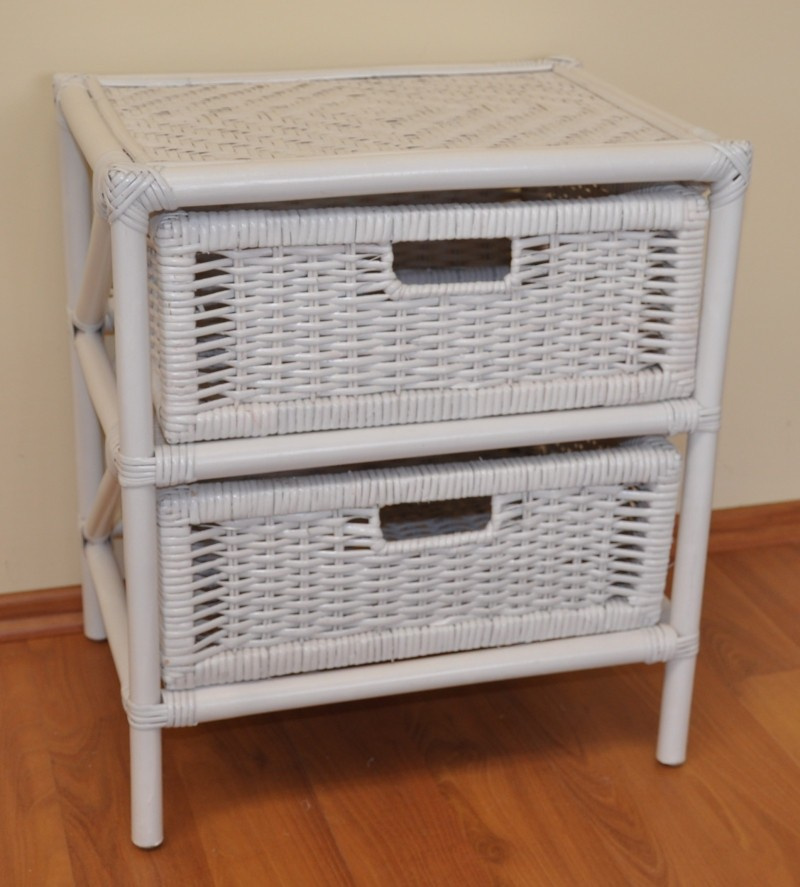 Ratanový nábytek - ratanová komoda 2 zásuvky. Konstrukce i výplet jsou z přírodního ratanu . Komoda má široké možnosti využití a je praktickým doplňkem do každé domáctnosti. | Barva ratanové konstrukce a výpletu je bílá. Velikost komody je 45x35x52 cm