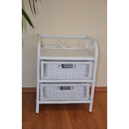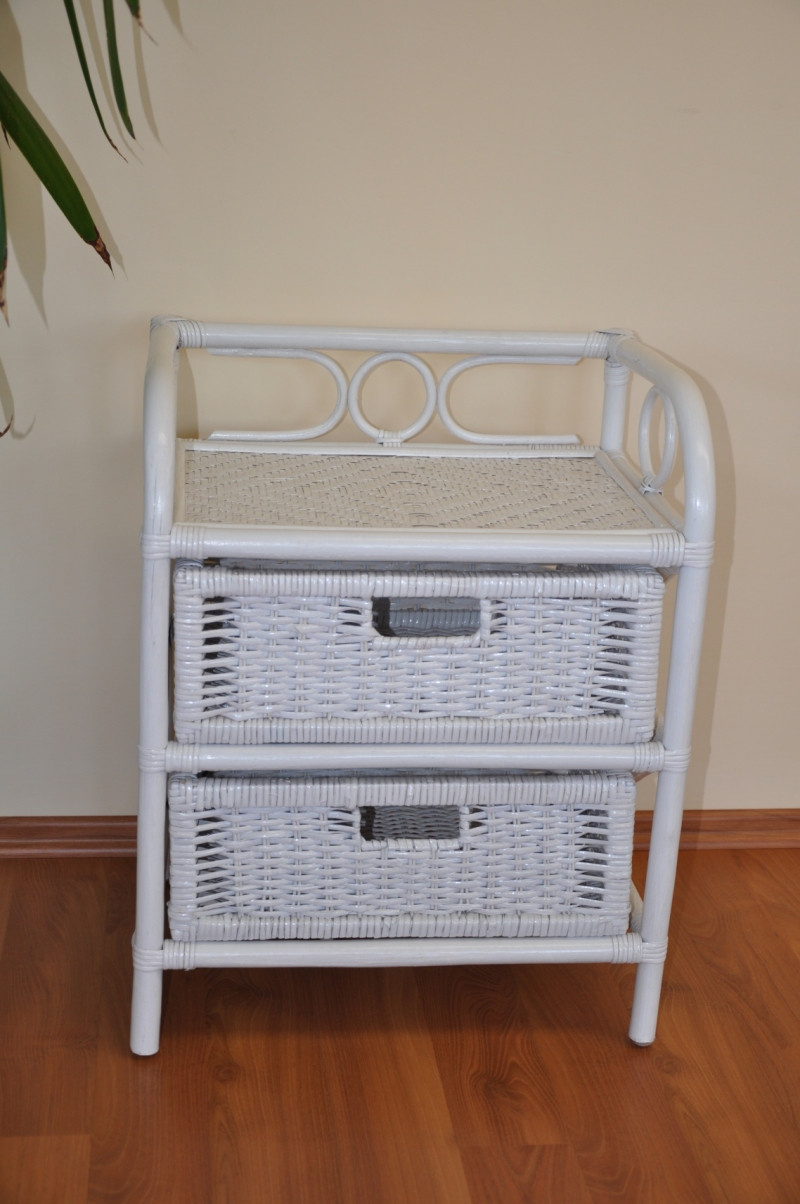 Ratanový nábytek -ratanová komoda 2 zásuvky. Konstrukce i výplet jsou z přírodního ratanu . Komoda má široké možnosti využití a je praktickým doplňkem do každé domáctnosti. | Barva ratanové konstrukce a výpletu je bílá. Velikost komody je 45x36x53 cm