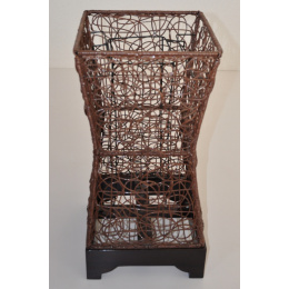 Základem lampy je kovová konstrukce. Ta je vypletena ručně přírodním ratanem. | Lampa je určena do interiéru. Lampa je navržena pro použití LED žárovek či úsporných světelných zdrojů. V žádném případě nepoužívejte klasické žárovky, které jsou během provozu velice teplé. Velikost lampy je 29x29x60 cm Lampa je dodávána bez připojovací sady, kterou je nutné si dokoupit.