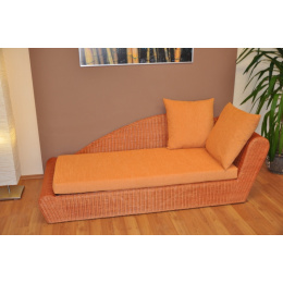 Ratanová odpočinková pohovka koňak levá polstr oranžový