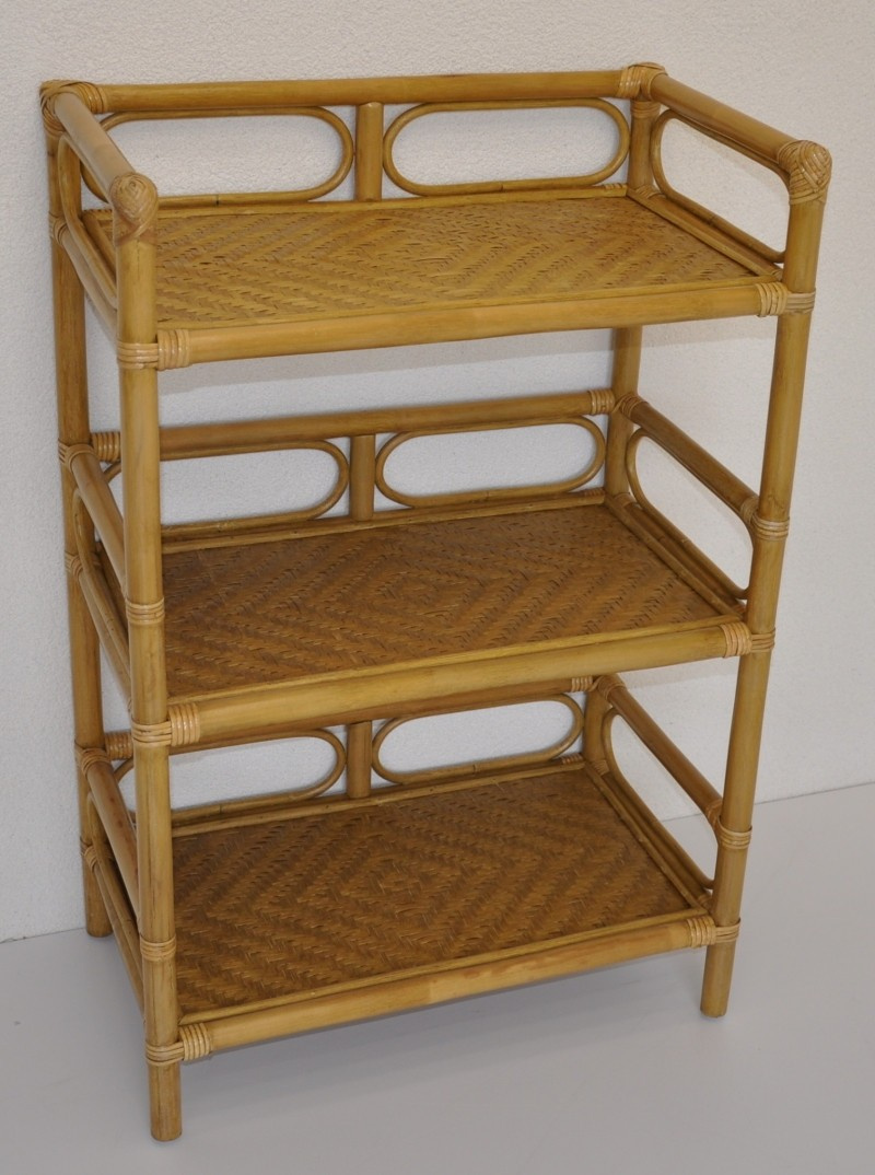 Ratanový nábytek - ratanová police 3 patra. Konstrukce i výplet jsou z přírodního ratanu. | Barva ratanové konstrukce a výpletu je medová. Velikost ratanové police je 58x35x87 cm.
