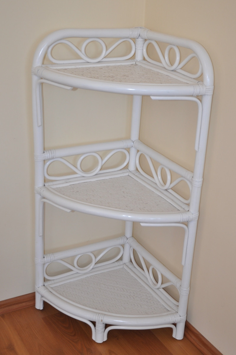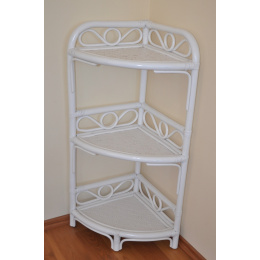 Ratanový nábytek -ratanová police 3 patra rohová. | Barva ratanové konstrukce i výpletu je bílá. Velikost ratanové police je 36x36x90 cm
