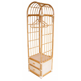 Ratanový nábytek - ratanová police s věšákem. | Barva ratanové konstrukce i ratanového výpletu je světlý med. Rozměr výrobku 50x45x180 cm Na polici jsou vzhledové vady - tnavé skvrny na výpletu. Police je dodávána bez ramínek.