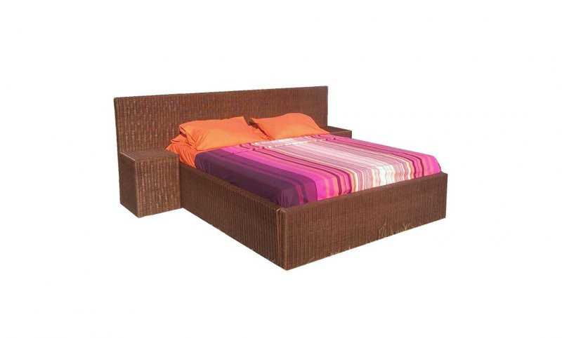 Postel s pevnou dřevěnou konstrukcí a opletením z přírodního ratanu. | Postel dodáváme v demontovaném stavu včetně dvou nočních stolků. Součástí dodávky nejsou matrace ani matracové rošty. Matracové rošty jde zaslat po předchozí domluvě. Barva ratanového výpletu je hnědá. Velikost postele je 207x254( šíře včetně nočních stolků) x výška 102 cm. Postel je vhodná pro 2 matrace šíře 90 cm.