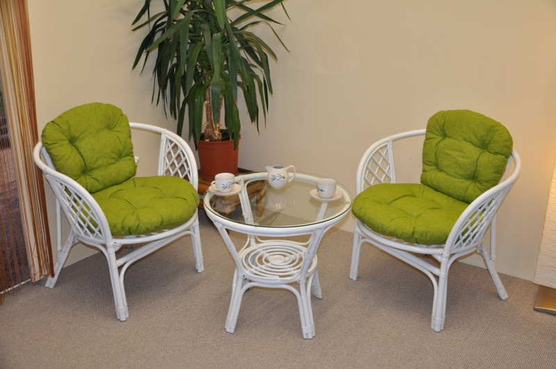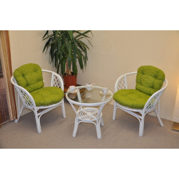 Ratanová sedací souprava Bahama bílá 2+1, polstry světle zelený melír