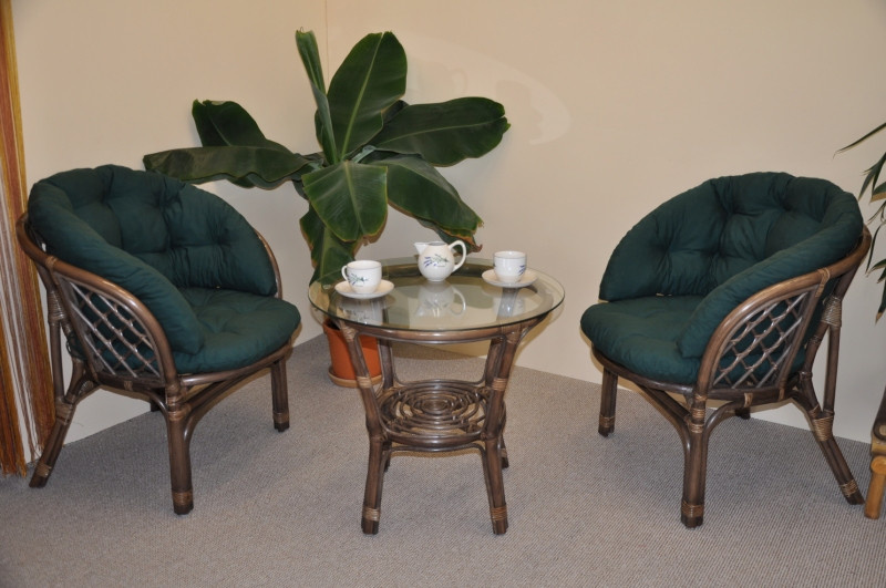 Ratanová sedací souprava Bahama hnědá 2+1, polstr MAXI zelený dralon