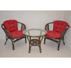 Ratanová sedací souprava Bahama hnědá 2+1, polstr vínový melír