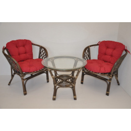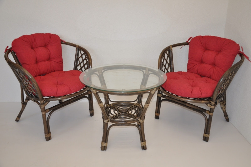 Ratanová sedací souprava Bahama se skládá ze dvou křesel, stolku se skleněnou deskou a kompletní sady polstrů. | Barva ratanové konstrukce je hnědá. Materiál konstrukce je přírodní ratan. Velikost křesla bahama je 68x66x73 cm, výška sedu 44 cm, nosnost křesla je 110 kg. Stolek má výšku 55 cm, průměr stolku 65 cm. Spoje ratanové konstrukce jsou šroubovány. Polstry na tuto sedací soupravu Bahama jsou vyrobeny v České republice. Polstry jsou vyrobeny z kvalitní látky a vyznačují se vysokou kvalitou zpracování.Polstry pro nás vyrábí firma AXIN Cuschions s.r.o., která zaměstnávávýhradně místní vyučené švadleny z České republiky. Tímto způsobem sesnažíme podporovat výrobu a zaměstnanost v naší republice. Náplň polstrů je drcený molitan a polstry lze prát ručně na 40o C.
