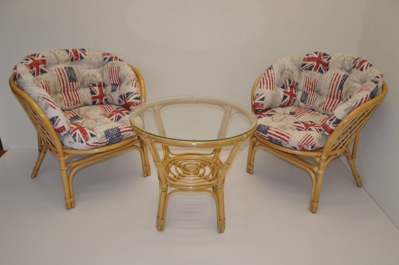 Sedací souprava Bahama patří stále mezi nejoblíbenější ratanové sedací soupravy. Souprava se skládá ze dvou křesel, stolku se skleněnou deskou a kompletní sady polstrů. | Barva ratanové konstrukce je medová. Materiál konstrukce je přírodní ratan. Rozměr křesla je 68x66x73 cm, výška sedu 44 cm, nosnost křesla je 110 kg. Stolek má výšku 55 cm, průměr stolku 65 cm. Spoje ratanové konstrukce jsou šroubovány. Polstry na tuto sedací soupravu jsou vyrobeny v České republice. Polstry jsouvyrobeny z kvalitní látky a vyznačují se vysokou kvalitou zpracování. Náplň polstrů je drcený molitan a polstry lze prát ručně na 40o C.
