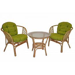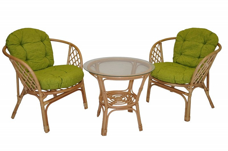 Sedací souprava Bahama patří stále mezi nejoblíbenější ratanové sedací soupravy. Souprava se skládá ze dvou křesel, stolku se skleněnou deskou a kompletní sady polstrů. | Barva ratanové konstrukce je medová. Materiál konstrukce je přírodní ratan. Rozměr křesla je 68x66x73 cm, výška sedu 44 cm, nosnost křesla je 110 kg. Stolek má výšku 55 cm, průměr stolku 65 cm. Spoje ratanové konstrukce jsou šroubovány. Polstry na tuto sedací soupravu jsou vyrobeny v České republice. Polstry jsouvyrobeny z kvalitní látky a vyznačují se vysokou kvalitou zpracování.Polstry pro nás vyrábí firma AXIN Cuschions s.r.o., která zaměstnávávýhradně místní vyučené švadleny z České republiky. Tímto způsobem sesnažíme podporovat výrobu a zaměstnanost v naší republice. Náplň polstrů je drcený molitan a polstry lze prát ručně na 40o C.
