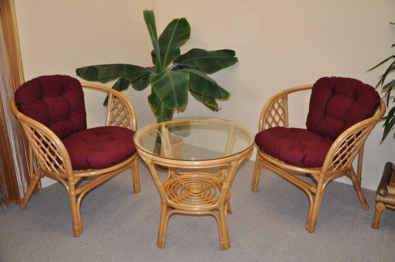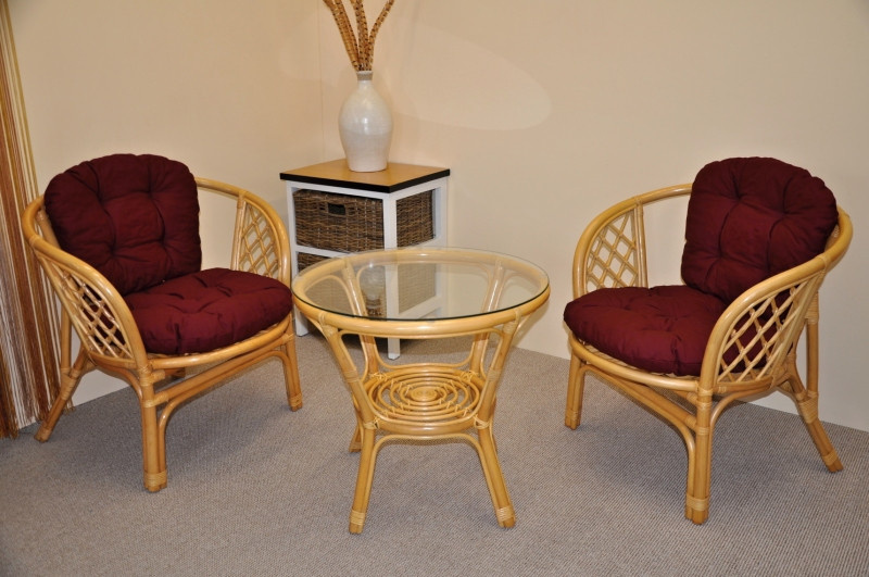 Sedací souprava Bahama patří stále mezi nejoblíbenější ratanové sedací soupravy. Souprava se skládá ze dvou křesel, stolku se skleněnou deskou a kompletní sady polstrů. | Barva ratanové konstrukce je medová. Materiál konstrukce je přírodní ratan. Rozměr křesla je 68x66x73 cm, výška sedu 44 cm, nosnost křesla je 110 kg. Stolek má výšku 55 cm, průměr stolku 65 cm. Spoje ratanové konstrukce jsou šroubovány. Polstry na tuto sedací soupravu jsou vyrobeny v České republice. Polstry jsouvyrobeny z kvalitní látky a vyznačují se vysokou kvalitou zpracování.Polstry pro nás vyrábí firma AXIN Cuschions s.r.o., která zaměstnávávýhradně místní vyučené švadleny z České republiky. Tímto způsobem sesnažíme podporovat výrobu a zaměstnanost v naší republice. Náplň polstrů je drcený molitan a polstry lze prát ručně na 40o C.