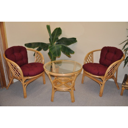 Ratanová sedací souprava Bahama malá medová vínové polstry