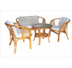 Ratanový nábytek - ratanová sedací souprava Bahama je vyrobena z přírodního ratanu s barvou konstrukce v medovém odstínu. Souprava obsahuje pohovku, 2 křesla, stolek se sklem a kompletní sadu polstrů vyrobených v České republice. | Barva ratanové konstrukce i ratanového výpletu je medová. Velikost pohovky je 115x66x73 cm, nosnost pohovky je 150 kg. Velikost křesla je 68x66x73 cm, nosnost křesla je 110 kg. Výška sedu je 44 cm. Stolek má výšku 55 cm, průměr stolku je 60 cm. Spoje ratanové konstrukce jsou šroubovány. Polstry na tuto sedací soupravu Bahama jsou vyrobeny v České republice. Polstry jsou vyrobeny z kvalitní látky a vyznačují se vysokou kvalitou zpracování.Polstry pro nás vyrábí firma AXIN Cuschions s.r.o., která zaměstnávávýhradně místní vyučené švadleny z České republiky. Tímto způsobem sesnažíme podporovat výrobu a zaměstnanost v naší republice.Náplň polstrů je drcený molitan a polstry lze prát ručně na 40o C.