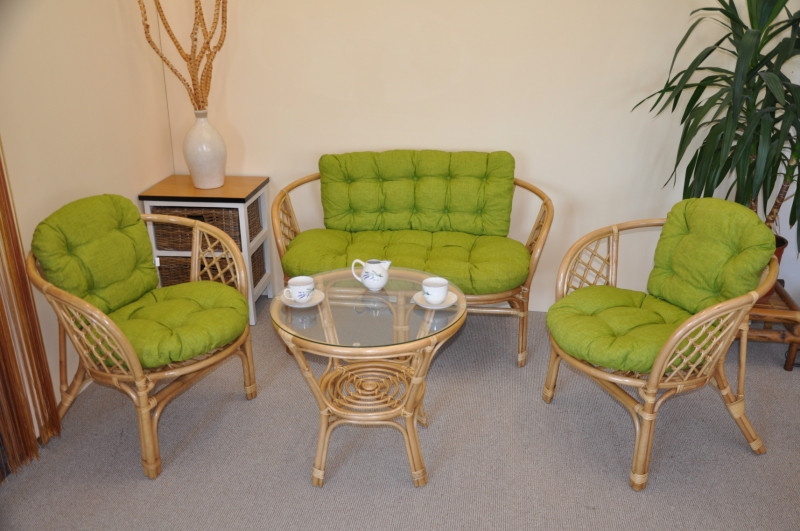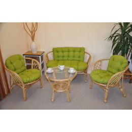 Ratanová sedací souprava Bahama medová velká polstry světle zelený melír