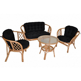 Ratanová sedací souprava Bahama tmavý med velká polstry černý kepr