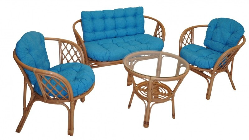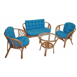 Ratanový nábytek - ratanová sedací souprava Bahama je vyrobena z přírodního ratanu s barvou konstrukce v tmavě medovém odstínu. Souprava obsahuje pohovku, 2 křesla, stolek se sklem a kompletní sadu polstrů. | Barva ratanové konstrukce i ratanového výpletu je tmavý med. Velikost pohovky je 115x66x73 cm, nosnost pohovky je 150 kg. Velikost křesla je 68x66x73 cm, nosnost křesla je 110 kg. Výška sedu je 44 cm. Stolek má výšku 55 cm, průměr stolku je 60 cm. Náplň polstrů je drcený molitan a polstry lze prát ručně na 40o C.