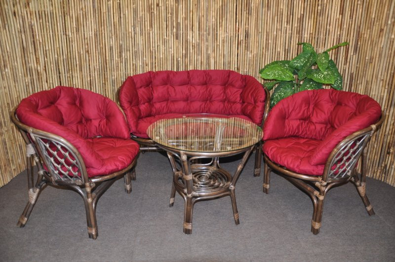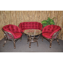 Ratanová sedací souprava Bahama velká hnědá, polstr MAXI vínový