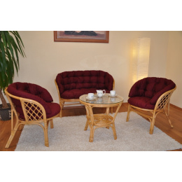 Ratanová sedací souprava Bahama velká medová polstr vínový MAXI