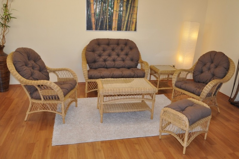 Ratanová sedací souprava Florida medová - polstry hnědý melír