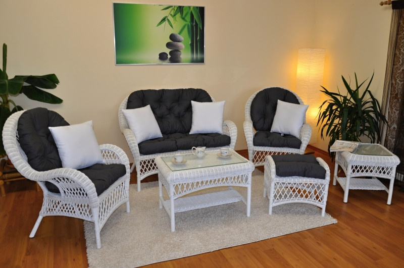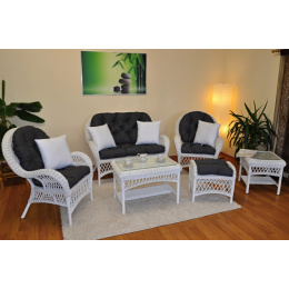 Ratanová sedací souprava Florida bílá - polstry šedé