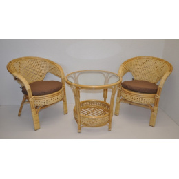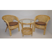 Ratanový nábytek - ratanová sedací souprava je vyrobena z přírodního ratanu s barvou konstrukce odpovádající fotografii výrobku,obsahuje 2 křesla a stolek se sklem a sadu polstrů. | Barva ratanové konstrukce i ratanového výpletu je medová. Velikost křesla je 66x67x78 cm. Nosnost křesla 115kg. Stolek výška 60 cm, průměr stolku 65 cm. Spoje ratanové konstrukce jsou šroubovány. Polstry jsou vyrobeny v České republice.