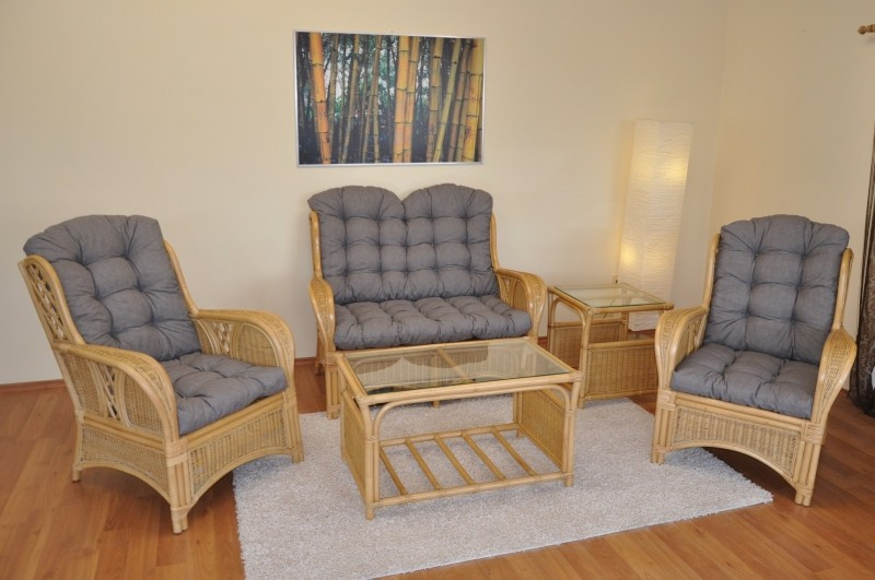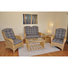 Ratanová sedací souprava Oliver medová, polstry šedý melír