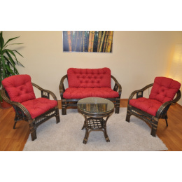 Ratanová sedací souprava Rio De Janeiro hnědá polstry vínový melír