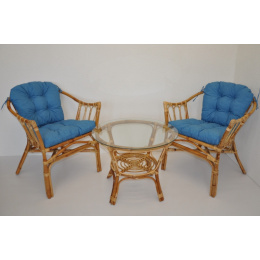 Ratanová sedací souprava Subaliu se skládá ze dvou křesel, stolku se skleněnou deskou a sady polstrů. | Ratanová sedací souprava Subaliu je vyrobena z přírodního ratanu semambo, který se vyznačuje vysokou pevností a stálostí. Velikost křesla je 65x67x77 cm Výška sedu křesla je 44 cm. Nosnost křesla je 115 kg. Velikost stolku se skleněnou deskou je: průměr 60 cm, výška 51 cm. Polstry na tuto sedací soupravu jsou vyrobeny v České republice. Polstry jsouvyrobeny z kvalitní látky a vyznačují se vysokou kvalitou zpracování.Polstry pro nás vyrábí firma AXIN Cuschions s.r.o., která zaměstnávávýhradně místní vyučené švadleny z České republiky. Tímto způsobem sesnažíme podporovat výrobu a zaměstnanost v naší republice. Náplň polstrů je drcený molitan a polstry lze prát ručně na 40o C. > > >>