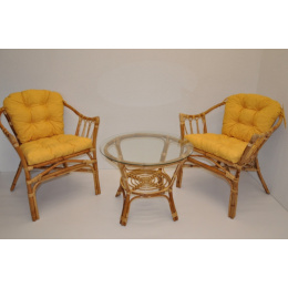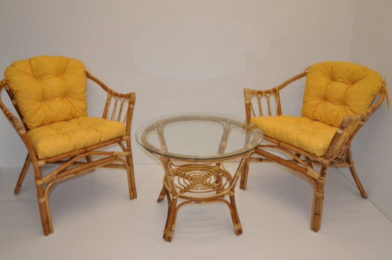Ratanová sedací souprava Subaliu se skládá ze dvou křesel, stolku se skleněnou deskou a sady polstrů. | Ratanová sedací souprava Subaliu je vyrobena z přírodního ratanu semambo, který se vyznačuje vysokou pevností a stálostí. Velikost křesla je 65x67x77 cm. Výška sedu křesla je 44 cm. Nosnost křesla je 115 kg. Velikost stolku se skleněnou deskou je: průměr 60 cm, výška 51 cm. Polstry na tuto sedací soupravu jsou vyrobeny v České republice. Polstry jsouvyrobeny z kvalitní látky a vyznačují se vysokou kvalitou zpracování.Polstry pro nás vyrábí firma AXIN Cuschions s.r.o., která zaměstnávávýhradně místní vyučené švadleny z České republiky. Tímto způsobem sesnažíme podporovat výrobu a zaměstnanost v naší republice. Náplň polstrů je drcený molitan a polstry lze prát ručně na 40o C. > > > >