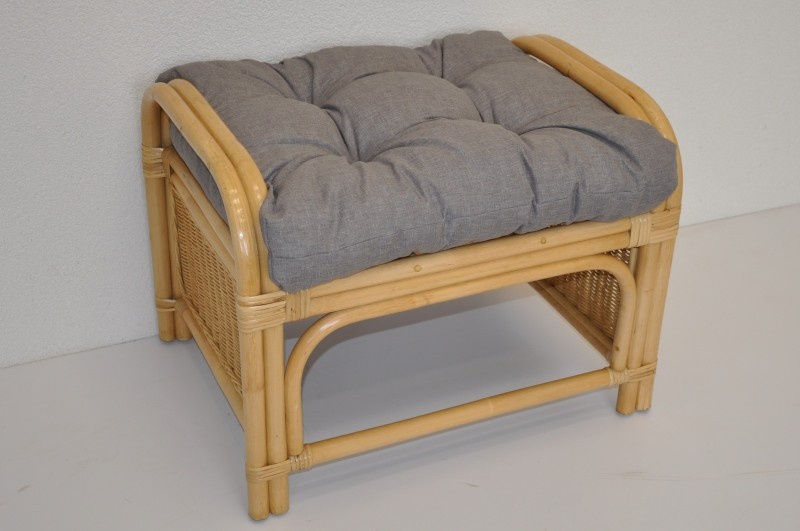 Ratanová taburetka Ear medová polstr šedý melír