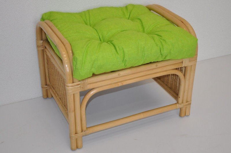 Ratanová taburetka Ear medová polstr světle zelený melír
