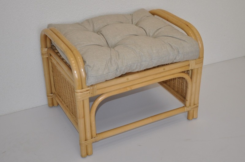 Ratanová taburetka Ear medová polstr tmavě béžový melír