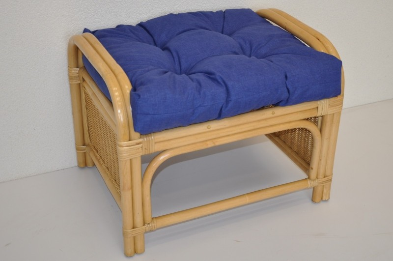 Ratanová taburetka Ear medová polstr tmavě modrý melír