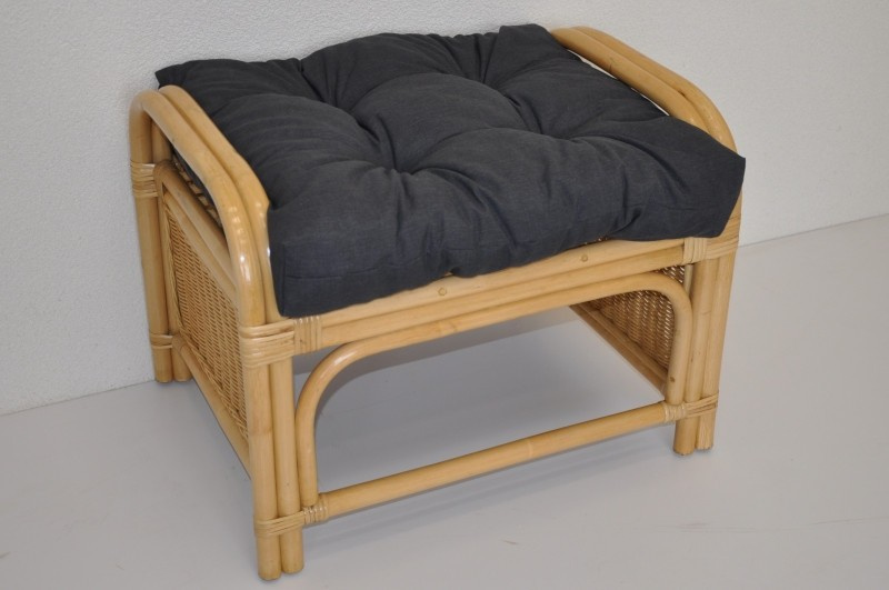 Ratanová taburetka Ear medová polstr tmavě šedý melír