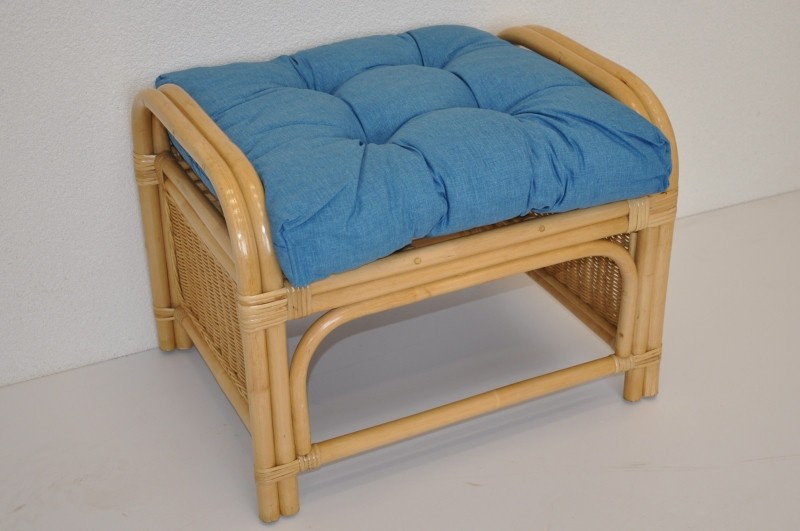 Ratanová taburetka Ear medová polstr tyrkysový melír