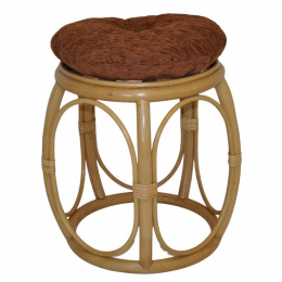 Ratanový nábytek - ratanová taburetka s polstrem. | Průměr taburetky v horní části je 35 cm. Výška taberetky je 38 cm. Nosnost taburetky je 110 kg. Barva ratanové konstrukce je medová. Polstr je vyrobený v České republice a je pratelný na 40oC. Materiál polstru je 100% bavlna, výplň polstru je drcený molitan.