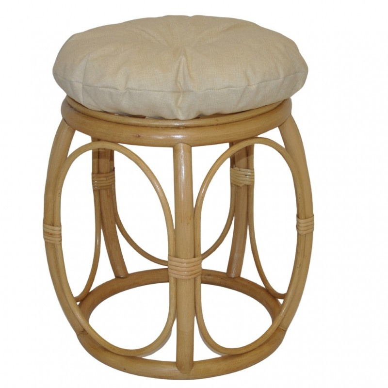 Ratanový nábytek - ratanová taburetka s polstrem. | Průměr taburetky v horní části je 35 cm. Výška taberetky je 38 cm. Nosnost taburetky je 110 kg. Barva ratanové konstrukce je medová. Polstr je vyrobený v České republice a je pratelný na 40oC. Materiál polstru je 100% bavlna, výplň polstru je drcený molitan.