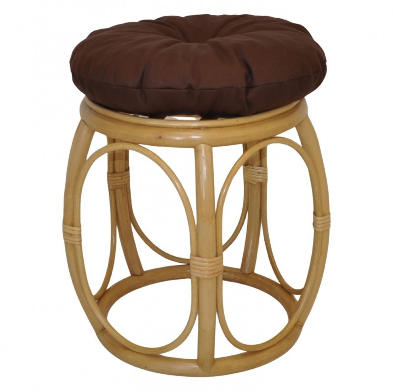 Ratanový nábytek - ratanová taburetka s polstrem | Průměr 35 cm, výška 38 cm. Nosnost taburetky je 110 kg. Barva ratanové konstrukce je medová. Polstr je vyrobený v České republice a je pratelný na 40oC. Materiál polstru je 100% bavlna, výplň polstru je drcený molitan.