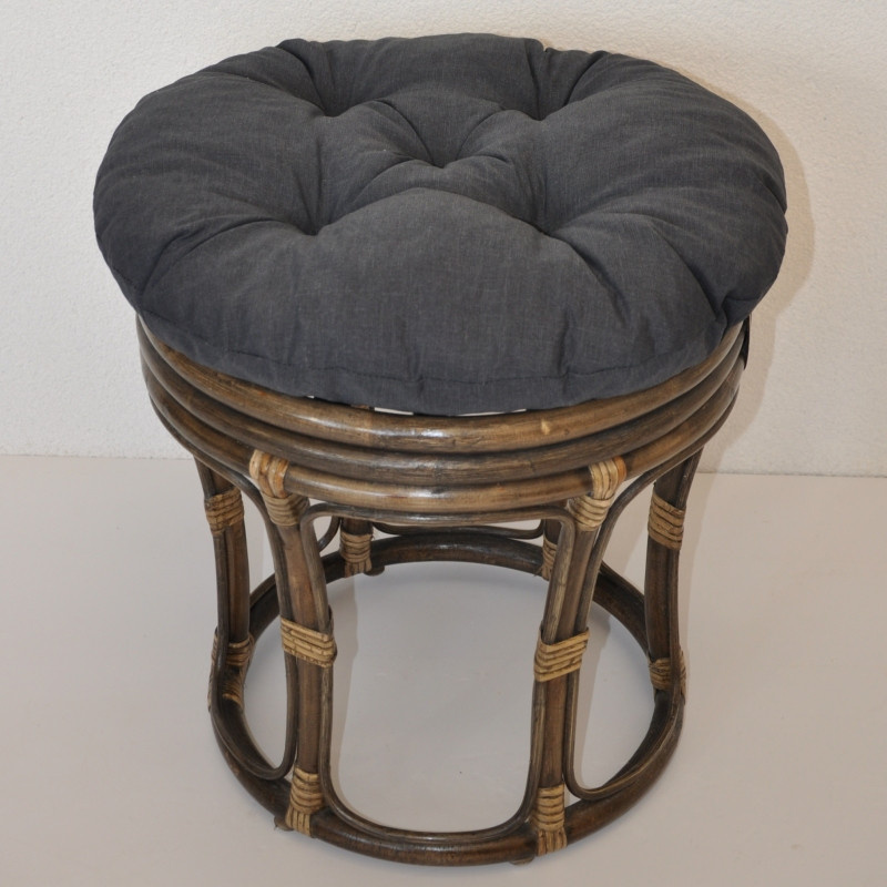 Ratanová taburetka velká hnědá polstr tmavě šedý melír