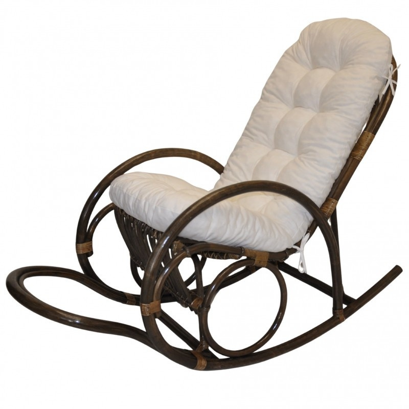 Ratanové houpací křeslo Jenaira hnědé polstr bílý