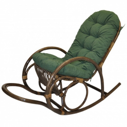 Ratanové houpací křeslo Jenaira hnědé polstr tmavě zelený melír