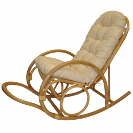Ratanový nábytek - ratanové houpací křeslo je vyrobeno z přírodního ratanu v barvě odpovídající obrázku. Pro výrobu křesla jsou použity obzvláště silné ratanové tyče což zajišťuje velice pevnou konstrukci. | Barva ratanové konstrukce je medová. Rozměr houpacího křesla je křesla 59x145x105 cm. Nosnost houpacího křesla je 130 kg. Polstr na ratanové křeslo je vyrobený v České republice.