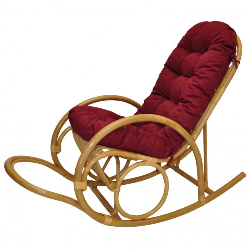 Ratanové houpací křeslo Jenaira medové polstr vínový kepr