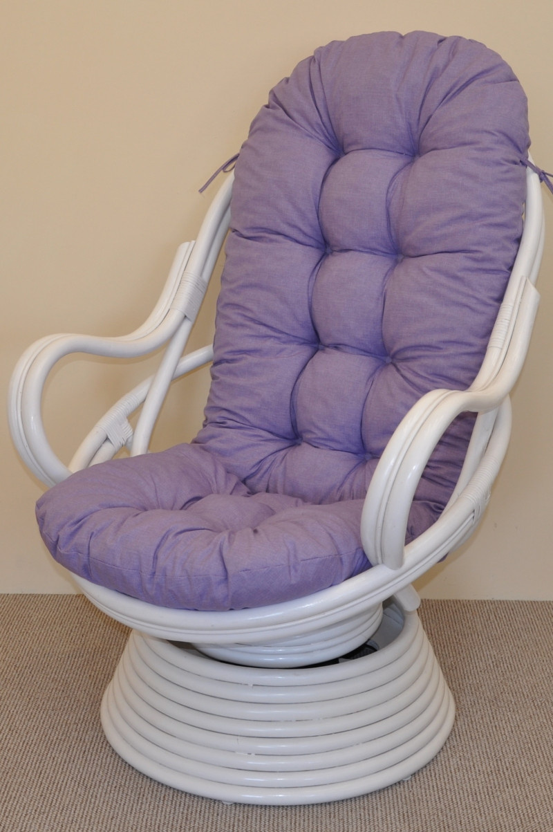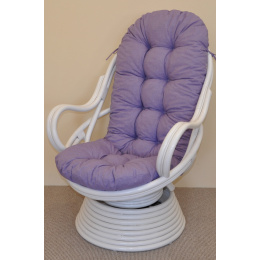 Ratanové houpací křeslo Swivel bílé polstr fialový melír
