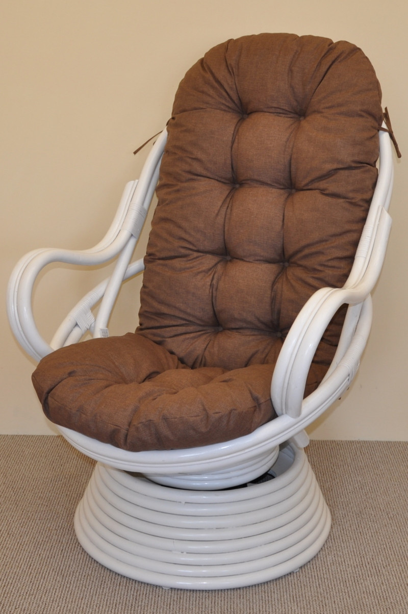 Ratanové houpací křeslo Swivel bílé polstr hnědý melír