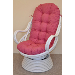 Ratanové houpací křeslo Swivel bílé polstr malinový melír
