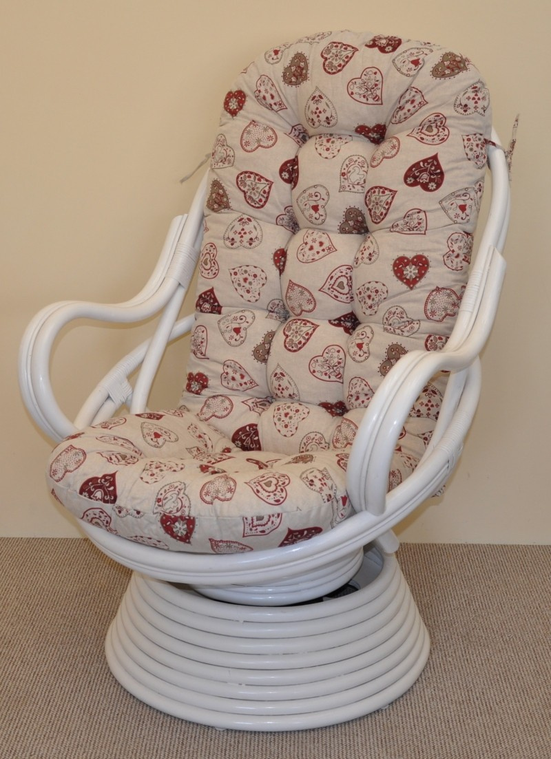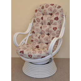 Ratanové houpací křeslo Swivel bílé polstr motiv červená srdce