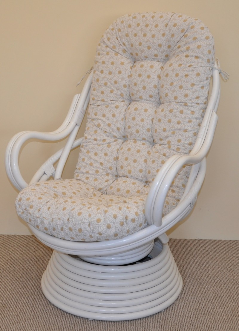 Ratanové houpací křeslo Swivel bílé polstr motiv kopretiny