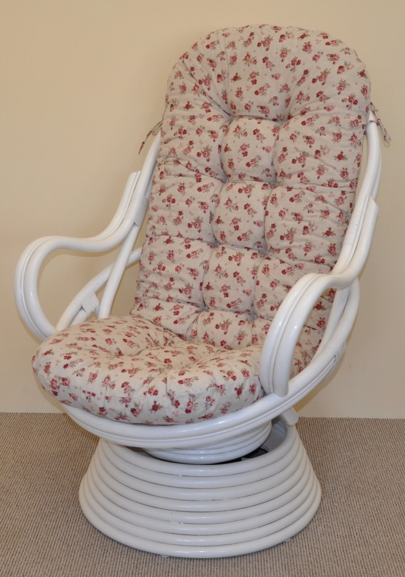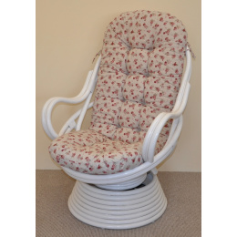 Ratanové houpací křeslo Swivel bílé polstr motiv růže